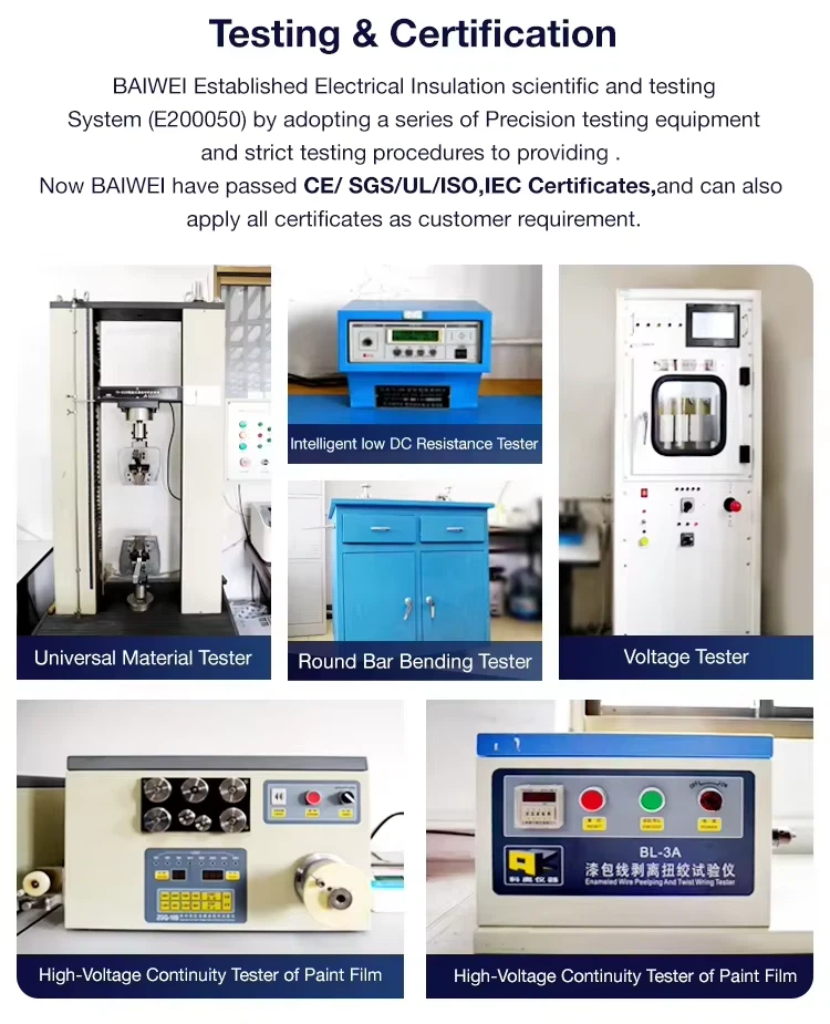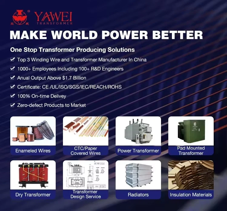 A: BAIWEI Electric is Established in 1990, is Subsidiary of YAWEI Group, now it’s one of top winding wire and transformer manufacturer in China, which covers an area of 500,000 ㎡,annual output is more than $ 1.7 billion dollars, Can not only Providing All the Winding wires and Wrapes wires ,CTC, Insulation materials and other parts of transformers, But also can provide Transormer Design and Producing Machines ,Testing equipment ,and Also Providing Transformer OEM& ODM Service .